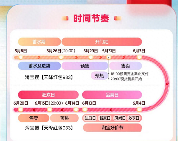 2、开门红:在5月31日20点618正式开始**波,开门活动从5.31-6.3共计3天4小时,开门红爆发,期间新增加百亿补贴、超级**日。
