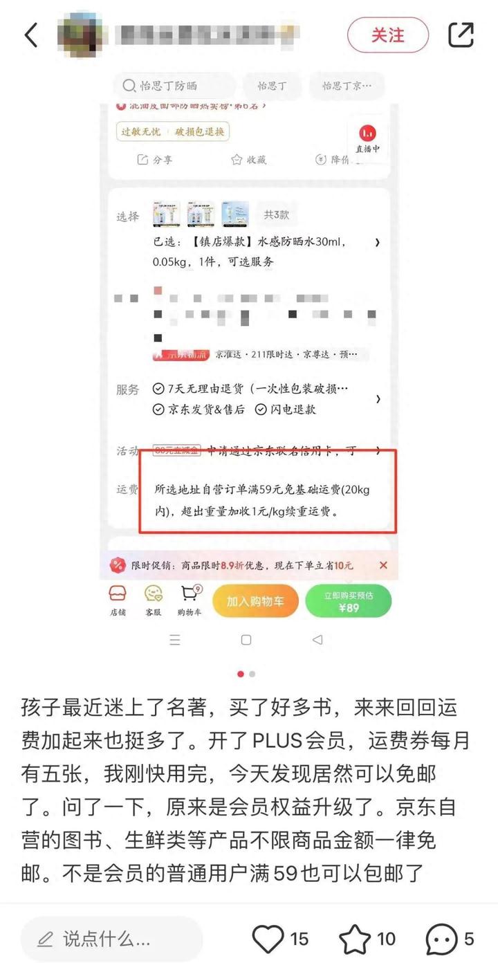 当然,对于没有PLUS会员的普通用户,京东自营商品的免邮门槛也从99元降到了59元。