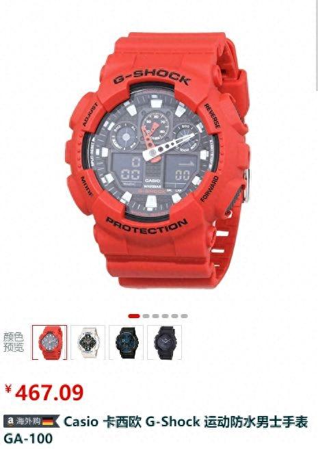 穿戴设备(手表)嘛,老张觉得卡西欧GA100蛮好看的,亚马逊价格467.09元,还不错,预计税费46、运费34,加上来也比**便宜,
