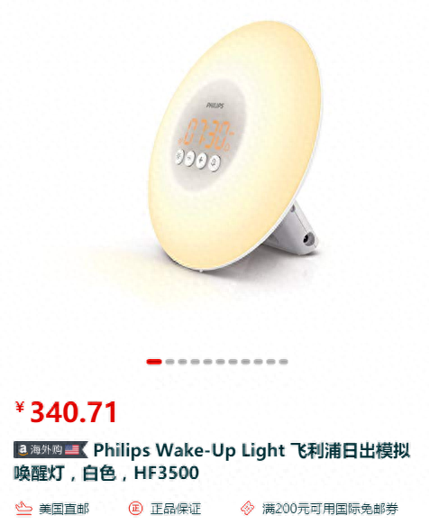 桌面设备上,飞利浦 HF3500挺有意思的,亚马逊搜狐家340.71,税费预计37、运费68,他可以模拟日出,实现自然唤醒功能,