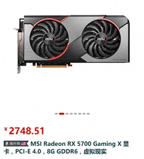 再者就是大家最关心的显卡,海外购美亚的微星 RX5700 Gaming X目前售价2748.51元,预计税费260、运费100,