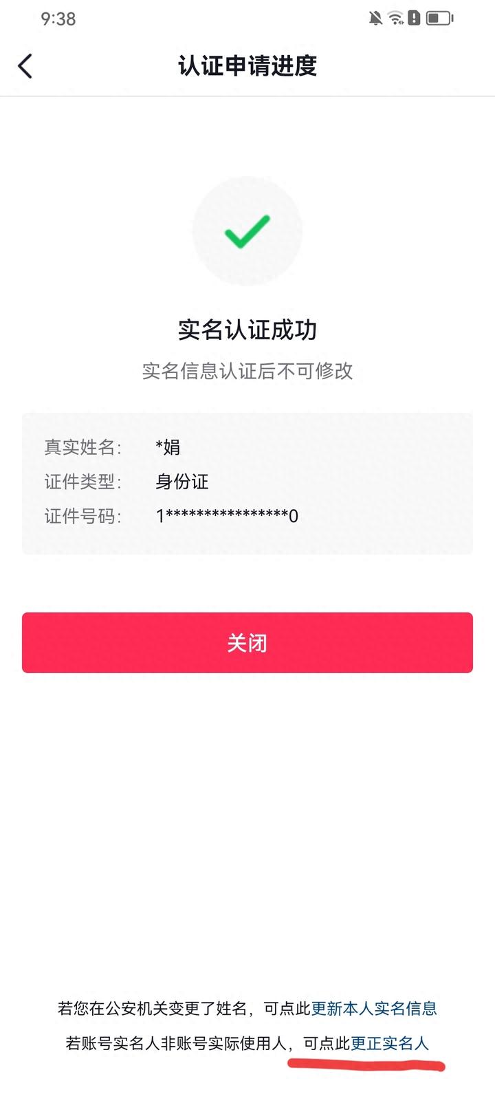 现在是已认证,然后把它点开,大家看**下,若账号实名人非账号实际实名人,可点此更正实名人,