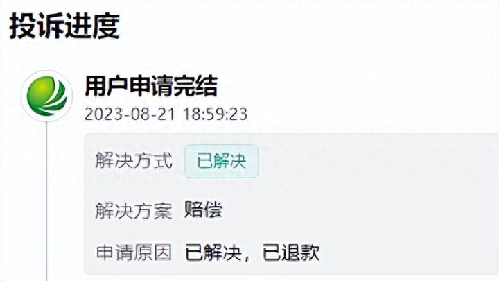 发起投诉后,消费保将该投诉转至闲鱼企业进行处理,并从中进行协商,当天傍晚,舒女士反馈称该投诉事件已解决,平台已完成退款申请,为闲鱼响应速度点赞!