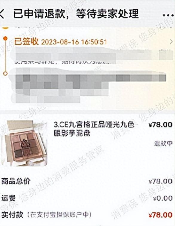 8月21日,舒女士投诉称,她于8月13日在闲鱼平台下单了一盒3ce眼影盘,收到后经专业鉴定平台鉴定为假货,于是舒女士向该平台提交了退款申请,但是目前还未收到退款。