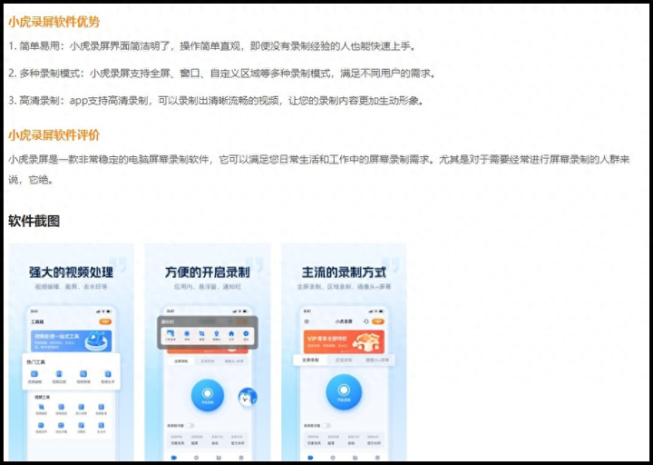 小虎录屏是一款非常流行的手机录屏应用,它提供了多种录屏模式和视频处理功能,例如可以将录屏视频压缩成较小的文件大小,以便在传输和存储过程中更加**。