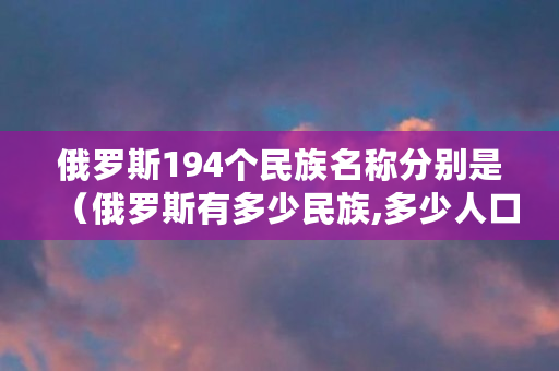 俄罗斯不但地大物博。民族也很多。是个多民族**。俄罗斯人口约一点四亿多。民族近二百个。其中俄罗斯族人约占一亿二千万。其余民族有**族,乌克兰族,巴什基尔族,**族,亚美利亚族等。俄语是俄罗斯官方语言。