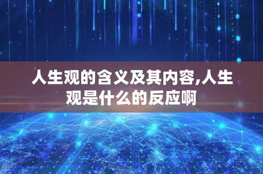 所谓人生观,就是对人生目的人生观的主要内容、意义的根本看法和态度。人生观是世界观的重要组成部分,是世界观在人生问题上的具体表现。它指导着人们的生活方向,影响着人们的道德品质和道德行为,决定着人们一生的价值目标和生活道路。