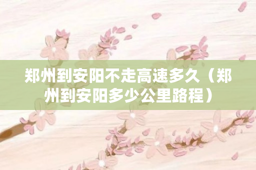 郑州到安阳要是不走高速的话,一般就是正常情况下。在4~5个小时左右 ,不走高速的情况下,十字路口,红绿灯太多了 ,有急事的话,还是建议走高速比较快,不容易误事儿 ,可是没有事儿的话, 不走高速也可以 ,只不过就是说有点儿慢而已 。到郑州如果不上高速的话,一般都在4~5个小时左右 。