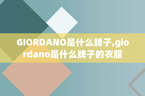 以上内容就是关于giordano是什么牌子的问题**解答了,如果对你有所帮助的话,请收藏关注本站,这里将更新更多关于giordano是什么牌子的内容。