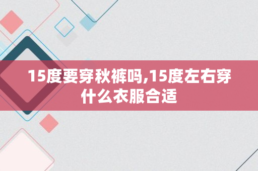 十五度要穿秋裤的季节,外面在穿一件单裤就可以了,当然这是年轻人的穿衣服,他们身体健康强壮,冬天都不穿棉的,我们老年人和小孩子可不能这样,穿少了冷不说还可以冻出病来的,人和人不一样要根据自己的身体情况来穿衣服和打伴啊。