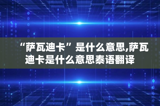 以上内容就是关于萨瓦迪卡是什么意思的问题**解答了,如果对你有所帮助的话,请收藏关注本站,这里将更新更多关于萨瓦迪卡是什么意思的内容。