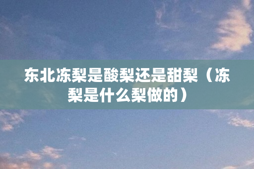 冻梨一般是由花盖梨、秋白梨、白梨、尖巴梨冰冻而成(延边地区是由“苹果梨”冰冻而成),食用时,将冻梨置凉水中浸泡,待化透后捞出可食。 冻梨的特点是口感脆。