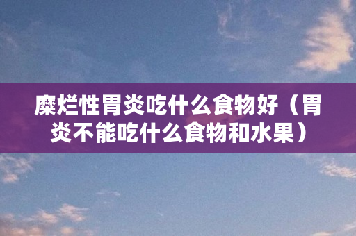 糜烂性胃炎可以适当多喝点小米粥,吃点新鲜的蔬菜,馒头等容易消化的食物,也可以适当喝点鱼类。平时**要按时吃饭,不要着凉,不要吃生冷硬辛辣**性的食物,也不要吃太油腻的食物,急性发作期也需要按时口服****,观察是不是能够好转。