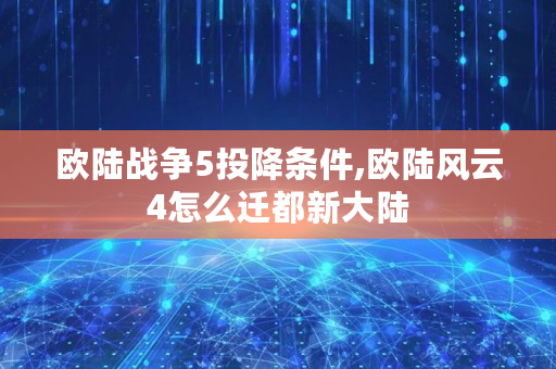 以上内容就是关于欧陆风云4怎么迁都的问题**解答了,如果对你有所帮助的话,请收藏关注本站,这里将更新更多关于欧陆风云4怎么迁都的内容。