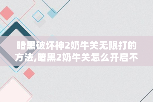 以上内容就是关于暗黑2奶牛关怎么开启的问题**解答了,如果对你有所帮助的话,请收藏关注本站,这里将更新更多关于暗黑2奶牛关怎么开启的内容。