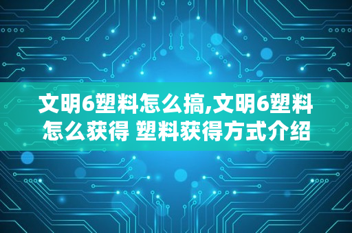 以上内容就是关于文明6塑料怎么获得的问题**解答了,如果对你有所帮助的话,请收藏关注本站,这里将更新更多关于文明6塑料怎么获得的内容。