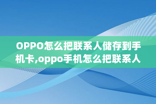 标签: oppo手机怎么把联系人导入sim卡