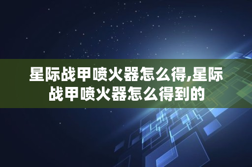 星际战甲喷火器怎么得